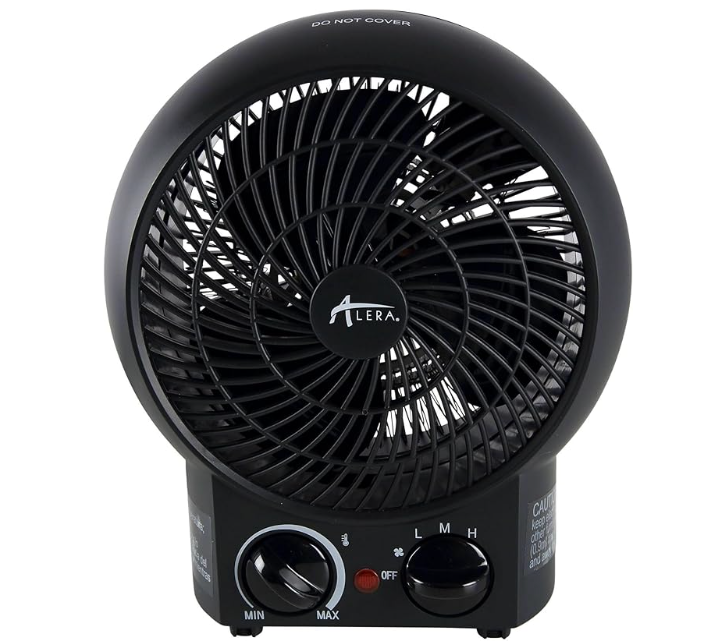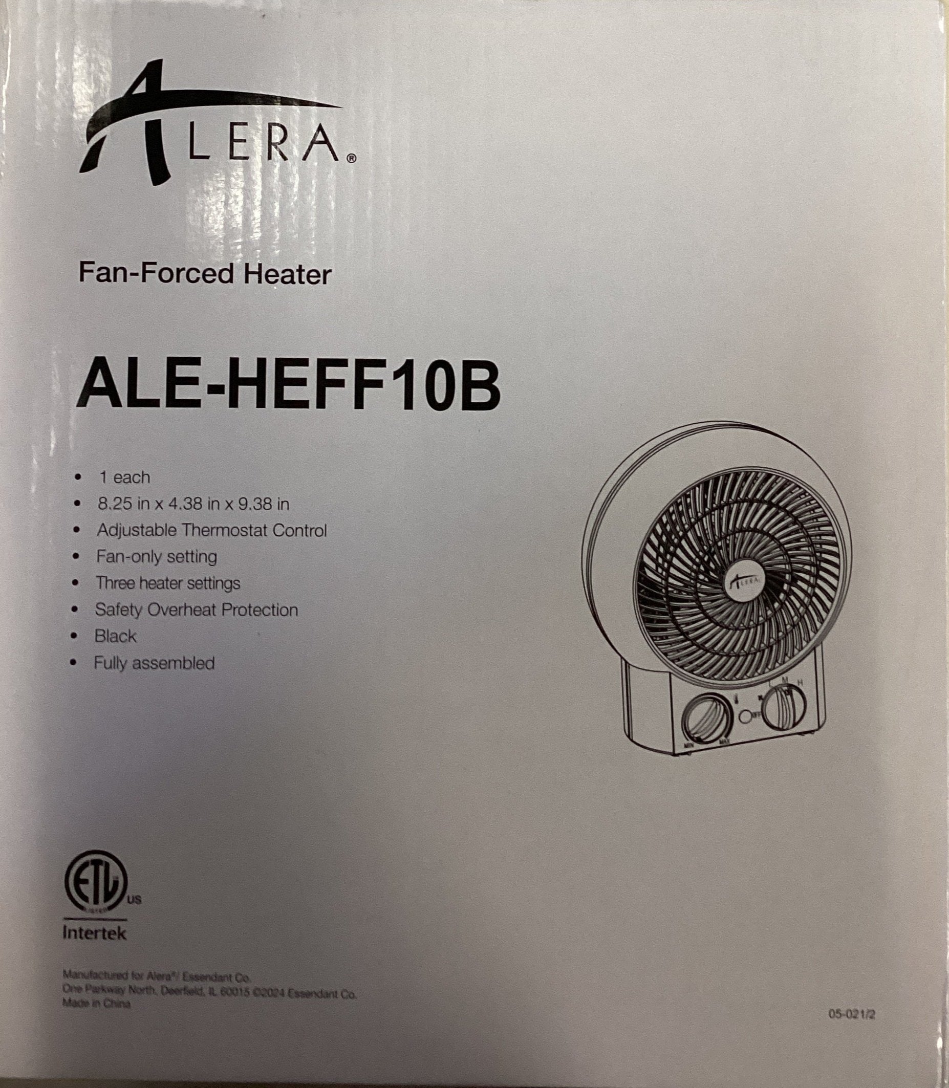 Alera Heater Fan; 1,500 Watts, 8.25 x 4.37 x 9.5; Black Aleheff10b. Black designed with safety in mind regarding overheat auto-shut off protection, tip-over safety switch, and a cool-to-the-touch plastic housing. Quiet heater or Fan-Only setting for all-season purposes. WARNING: This product can expose you to Lead, which is known to the State of California to cause Cancer and Birth Defect/Reproductive Harm. For more information go to www.P65Warnings.ca.gov. - Cancer: Lead;;Birth Defect/Reproductive Harm: Lead.