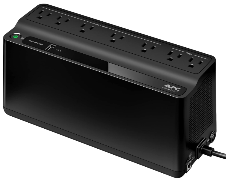 APC Back-ups 600 VA / 330 Watts Battery Backup System, 7 Outlets, 490 J ( APWBE600M1 ) | Stay connected for hours, not minutes. Charge and power more than one device at once. Wider outlet spacing for both high and low power devices. Note: This is a non-returnable item.