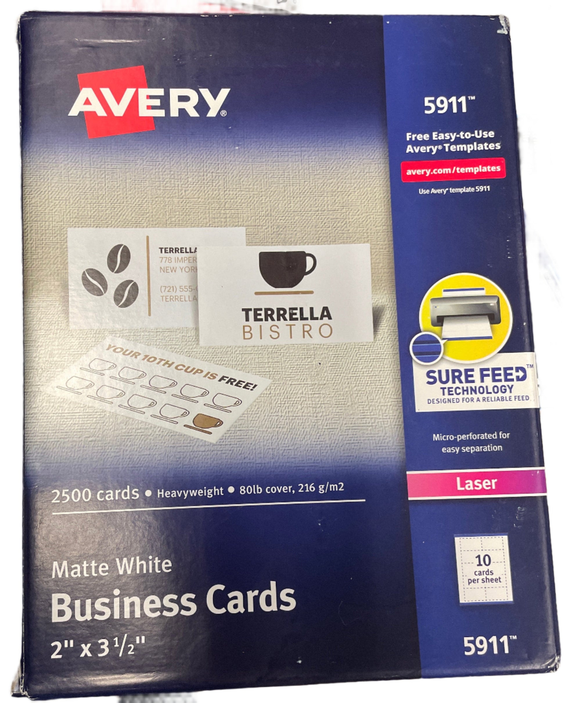 The Avery 5911 Laser Business Cards offer a professional, high-quality solution for creating custom business cards. Each card measures 2" x 3 1/2", and the cards are designed for use with laser printers to ensure crisp text and vibrant colors. With 10 cards per sheet and 2500 cards per box, you’ll have plenty of business cards to meet your needs. The bright white cardstock provides a clean, polished look, and the cards are easy to separate along the perforated edges. Perfect for business owners, freelancers, or anyone who needs to make a lasting impression, these business cards are compatible with Avery’s free templates for easy customization and printing.