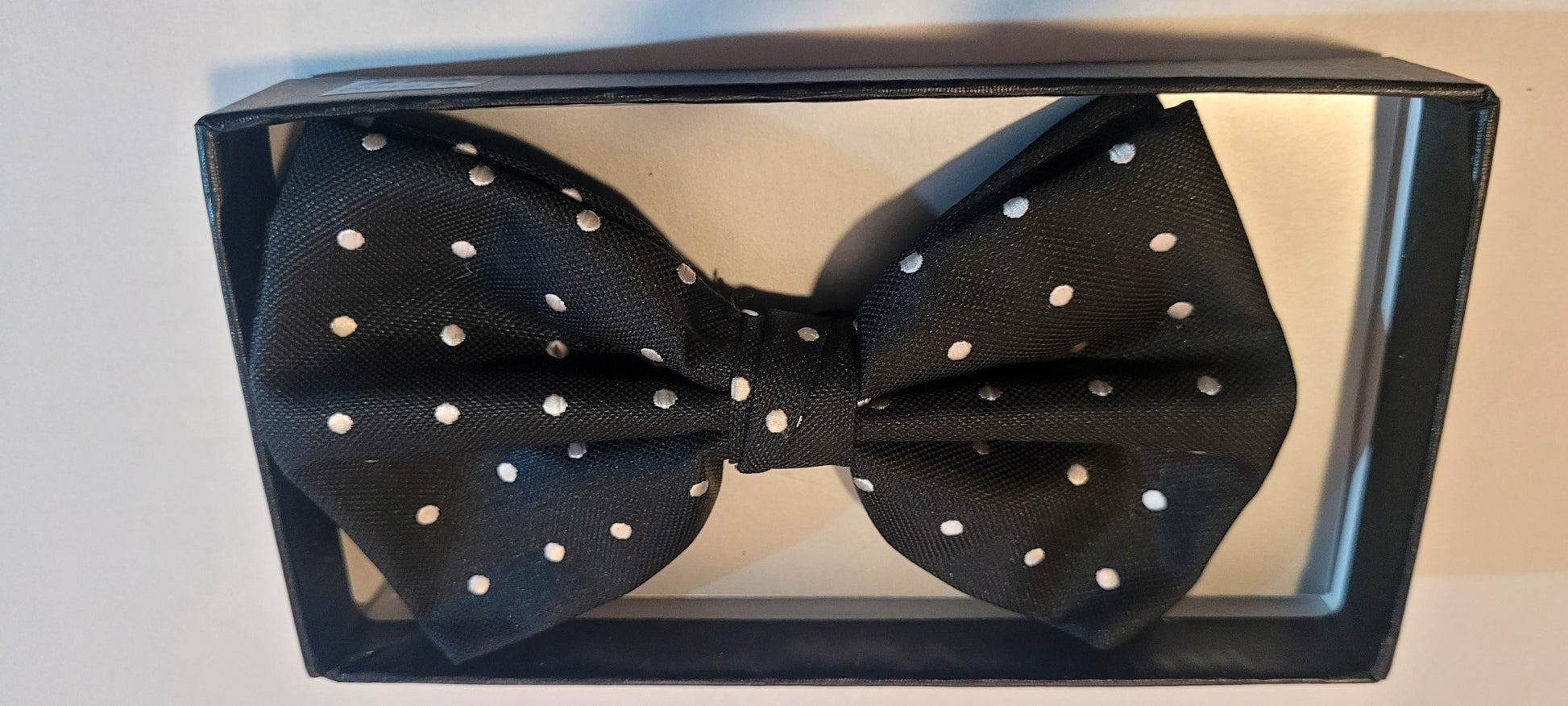 The Black with Small White Dots Microfiber Bow Tie offers a timeless and versatile design, making it suitable for various formal and semi-formal occasions. Its understated elegance allows it to pair effortlessly with different suit colors and patterns, enhancing any ensemble with a touch of sophistication.