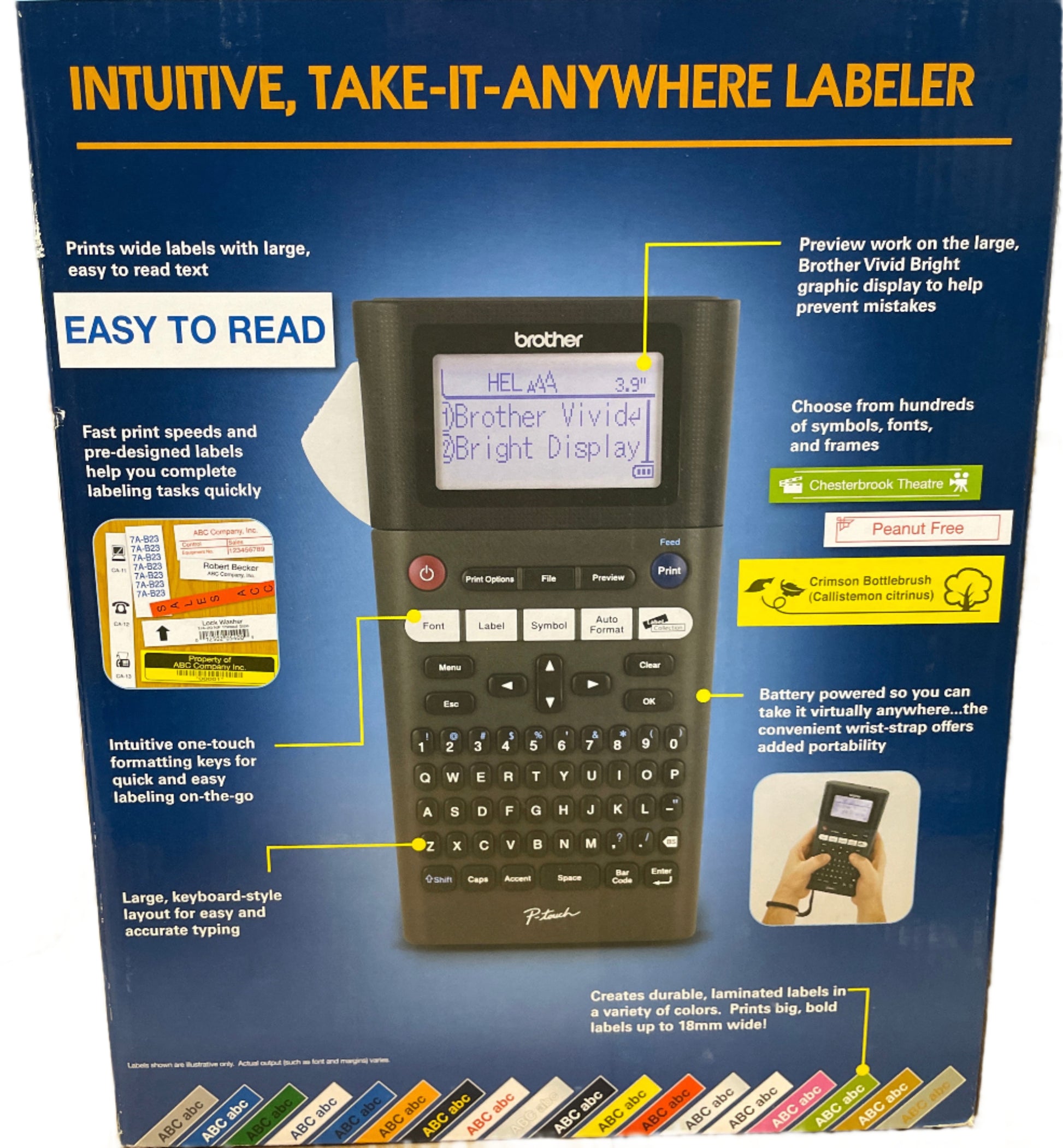 - One-Touch Formatting: Create professional labels with ease by simply pressing a button to select pre-set label designs, text sizes, and styles—saving time and effort.