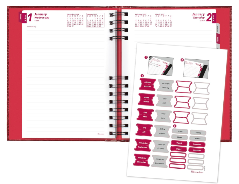Brownline Coilpro Ruled Daily Planner, 8.25 X 5.75, Red Cover, 12-month (jan to Dec): 2025 ( REDCB389CRED )