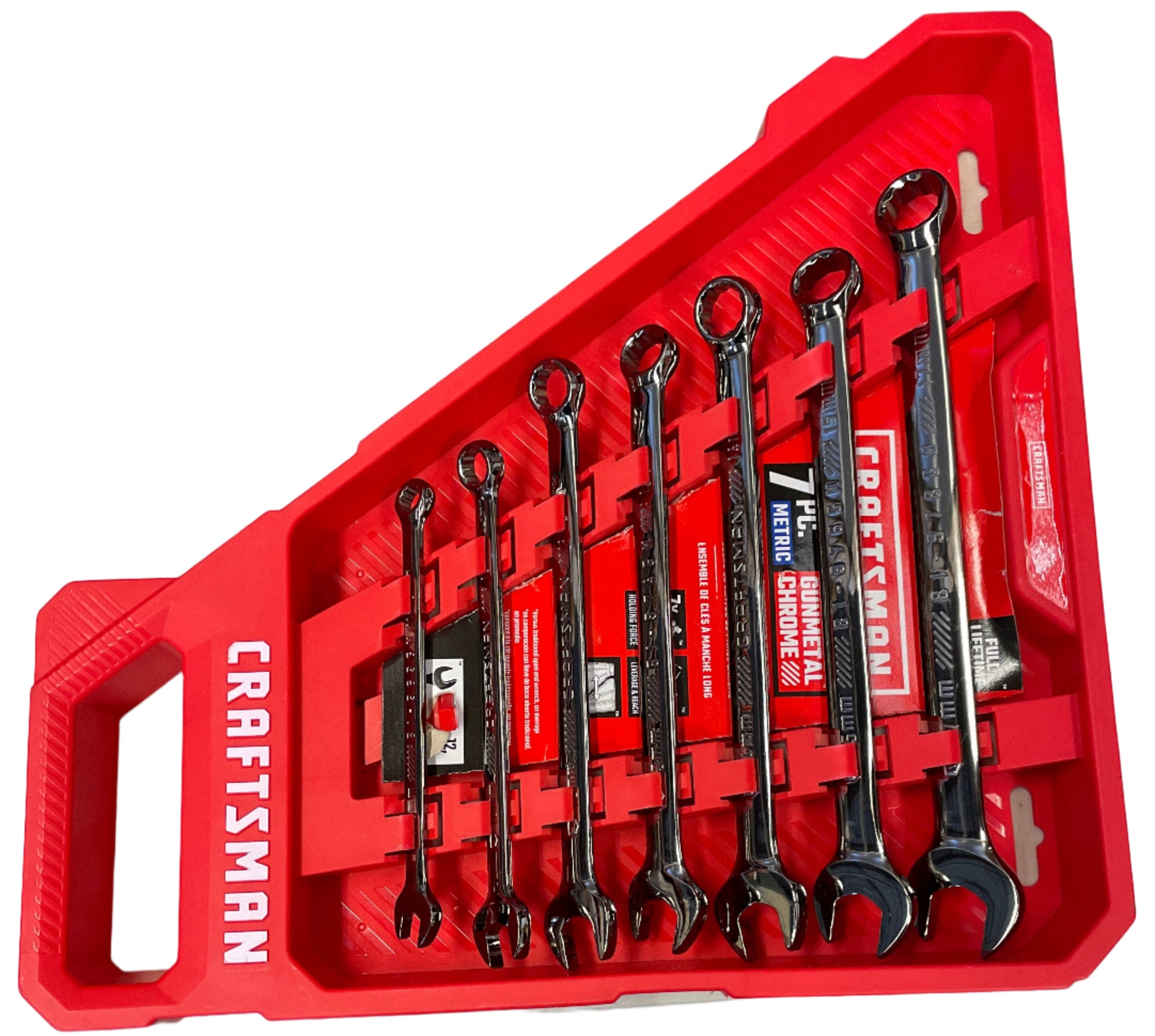The Craftsman CMMT12063L Metric Long Panel Combination Wrench Set (7-Piece) offers durability and performance with wrenches designed for enhanced leverage and access to tight spaces. Made from high-quality alloy steel and finished with a corrosion-resistant gunmetal chrome coating, this set includes metric sizes with both 12-point open-end and box-end designs. Ideal for automotive and mechanical tasks, these wrenches provide reliable, long-lasting performance for professionals and DIY enthusiasts alike.