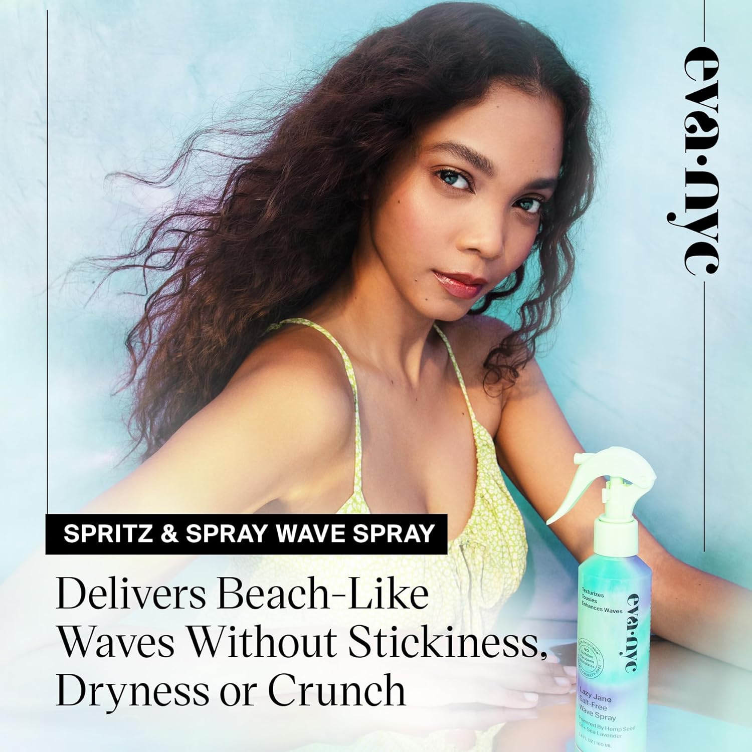 The Eva NYC Lazy Jane Salt-Free Wave Spray is a lightweight, texturizing spray designed to help you achieve soft, effortless beachy waves—without the drying effects of salt. It’s perfect for enhancing natural texture while keeping hair hydrated and touchable.
