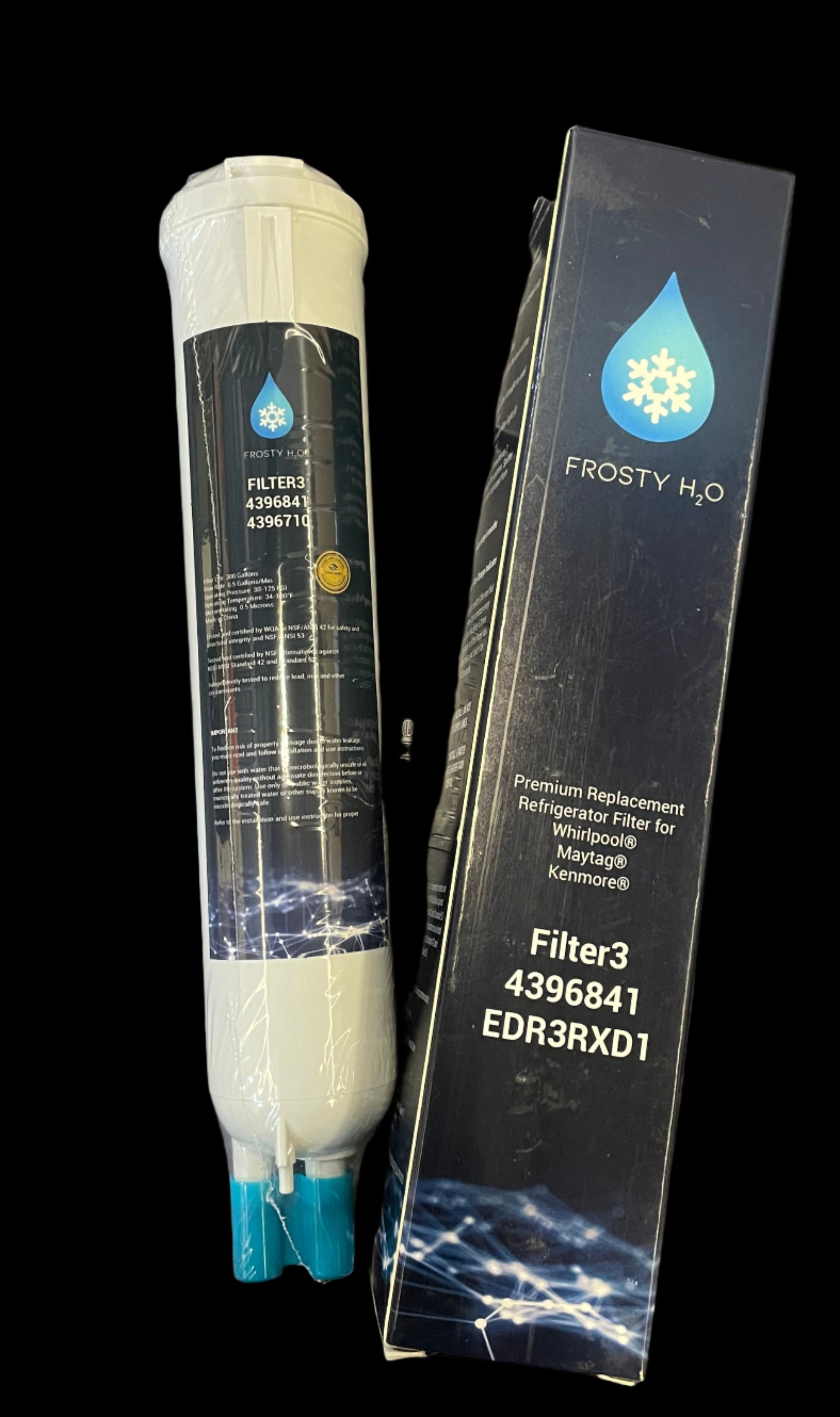 The Frosty H2O Ice & Water Filter3 is a high-performance refrigerator water filter designed to reduce contaminants and provide clean, fresh-tasting water. It is compatible with Whirlpool, Kenmore, Maytag, refrigerators. This filter is easy to install with its push-in design and helps remove harmful substances from your drinking water.