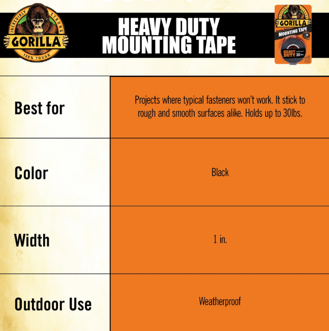 Gorilla 1" Double-Sided Mounting Tape Squares are designed for tough, permanent bonding without the need for nails, screws, or other fasteners. These pre-cut, clear adhesive squares are strong, durable, and suitable for a wide variety of surfaces. Ideal for both indoor and outdoor use, they offer a quick and clean solution for mounting items discreetly and securely.