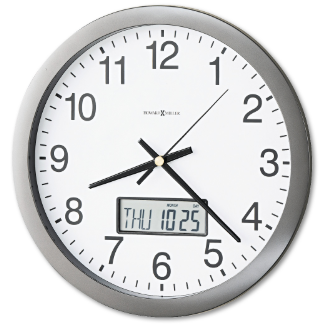 Howard Miller Chronicle Wall Clock With LCD Inset, 14" Overall Diameter, Gray Case, 2 Aa (sold Separately) ( MIL625195 ) | LCD inset lets you track day, date and month as well as time. Timepiece is part clock, part calendar for optimum time management.