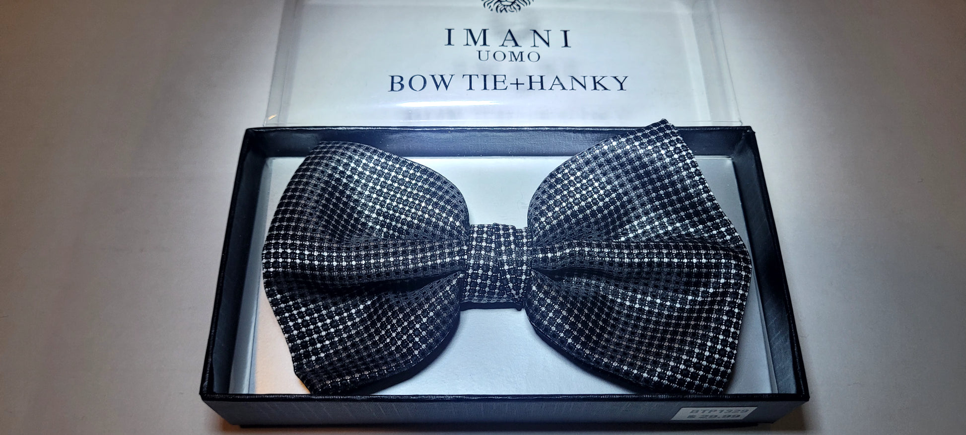 Imani Uomo Black & White Pattern Bow Tie + Hanky