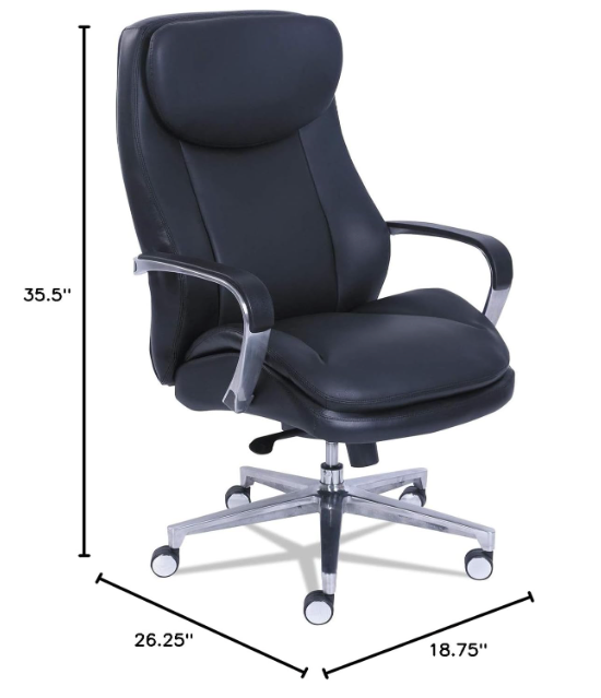 The La-Z-Boy 2000 High-Back Executive Chair combines luxurious comfort with durability to deliver a chair that enhances productivity and well-being. With its high-back design, adjustable features, and plush cushioning, this chair ensures that you stay comfortable during extended work sessions. The stylish black leather seat and back, complemented by a sleek silver base, also add an elegant touch to any office space.