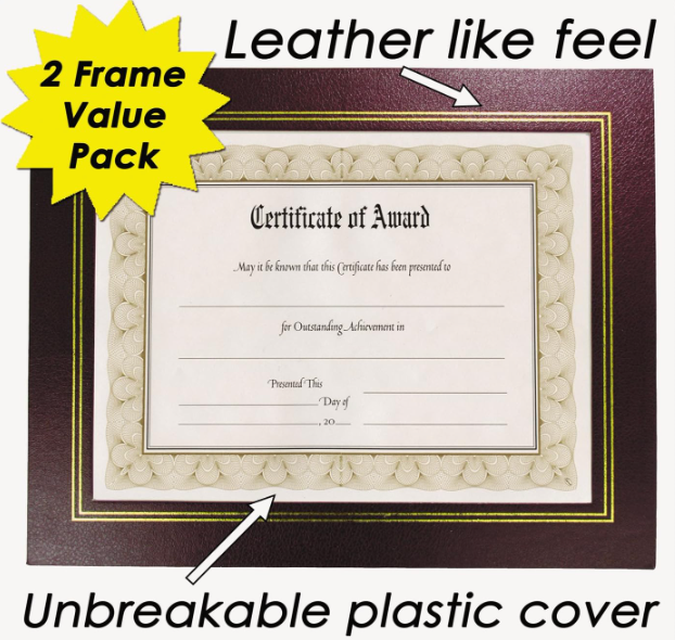 Add a touch of elegance and sophistication to your photos, certificates, or artwork with the Leatherette Frame. This set includes 2 frames designed to hold 8.5x11 inch documents, providing a stylish and durable way to showcase your cherished memories or important achievements. The rich burgundy leatherette finish offers a professional look while ensuring long-lasting quality. Ideal for office desks, home decor, or as a thoughtful gift, these frames offer both beauty and functionality in one.