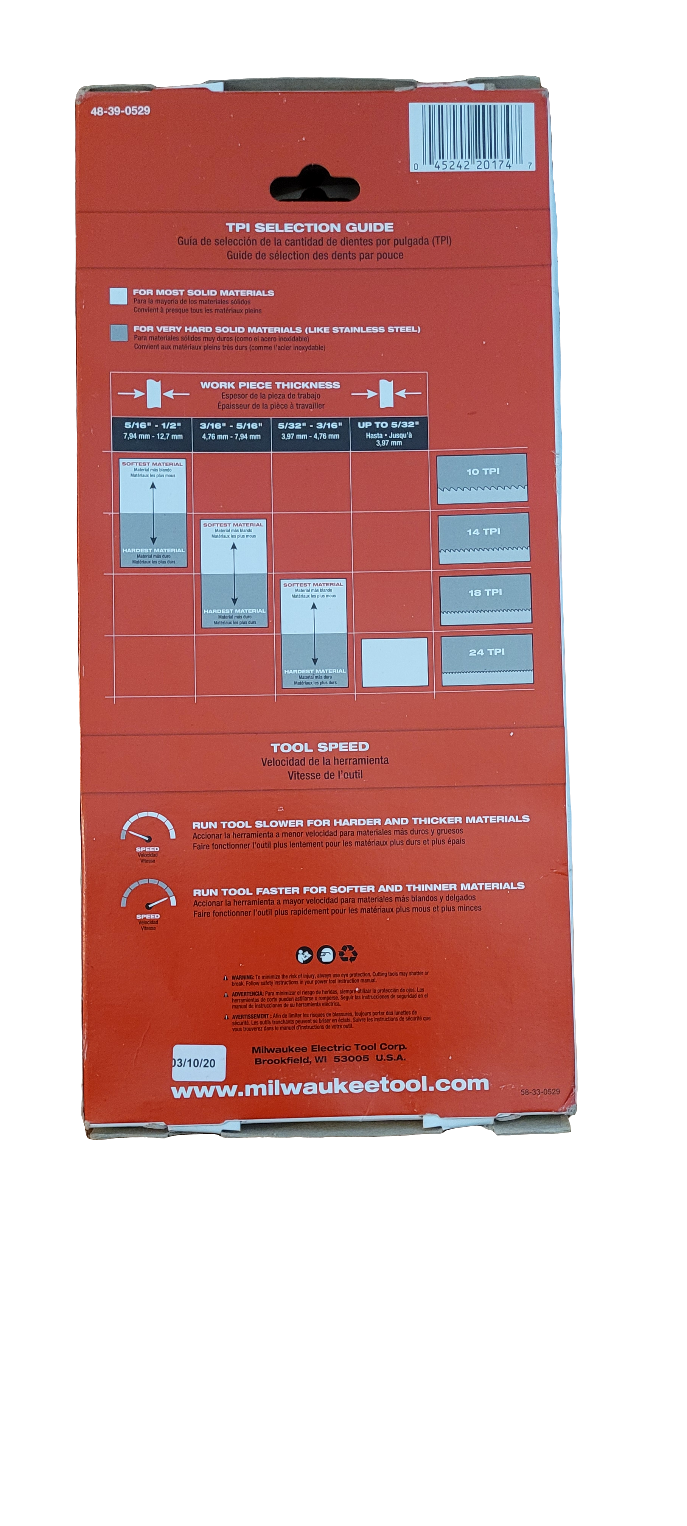 3 piece portable band saw blades. Made by Milwaukee. 18 TPI, alloy backing steel extended blade life
