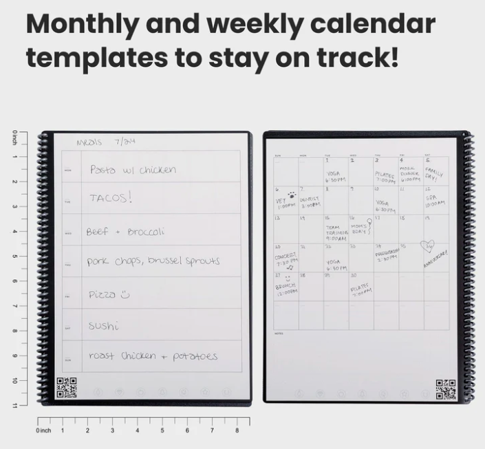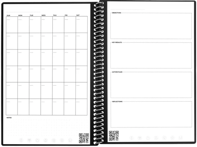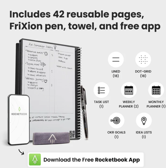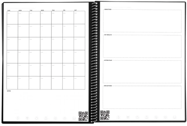 - Rocketbook Fusion: Comes with 42 pages, including pre-designed templates for goal tracking, weekly planning, brainstorming, and more.