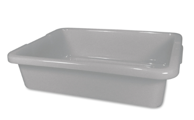 Rubbermaid Commercial Bus/utility Tote, 20" X 15" X 5", Gray ( RCP3349GRA ) | Undivided bus box is constructed of heavy-duty, commercial grade plastic. This utility box also has reinforced handles and bottom, as well as ribs, for extra strength. Featuring rounded corners for easy cleaning, the bus box is ideal for dishwashing, hotels, bars, and restaurants. NSF Std. #2 certified and safe for commercial dishwashers.