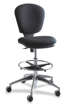 The Safco 3442BL Metro Extended Height Swivel/Tilt Chair offers versatile seating for a variety of work environments. Featuring a height-adjustable seat that ranges from 22 to 33 inches, this chair is designed to accommodate both standard and extended-height workstations. The swivel and tilt functionality allows for flexible movement and optimal comfort throughout the day. Its sleek black fabric upholstery complements any office decor while providing durability and ease of maintenance. Ideal for use at drafting tables, high desks, or lab settings, the Metro chair combines ergonomic support with stylish design for enhanced productivity and comfort.