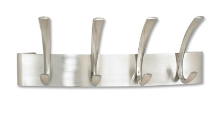 Safco Metal Coat Rack, Steel, Wall Rack, Four Hooks, 14.25w X 4.5d X 5.25h, Brushed Nickel