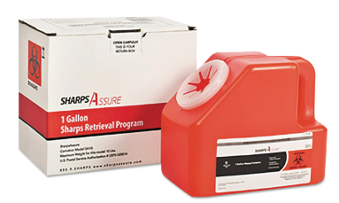 Sharps Assure Sharps Retrieval Program Containers, 1 Gal, Cardboard/Plastic, Red (TMDSC1G424A1G) | This comprehensive sharps container system is designed for the safe capture, shipping, and disposal of biohazardous waste. The kit includes a sharps container, a shipping box with prepaid postage, instructions, and tracking documents.