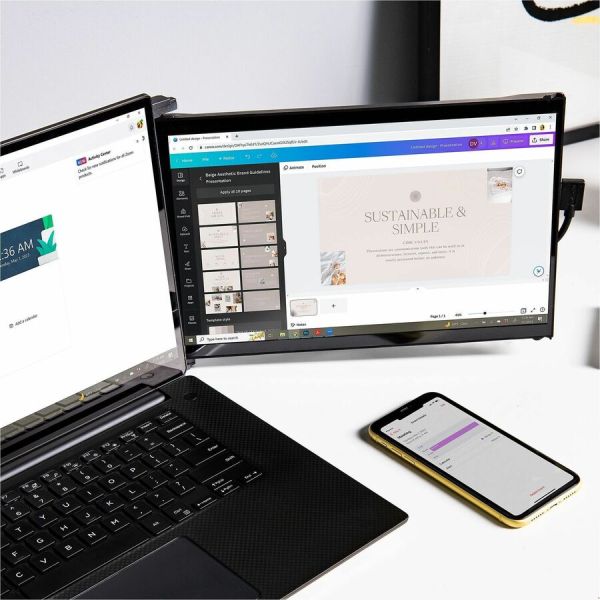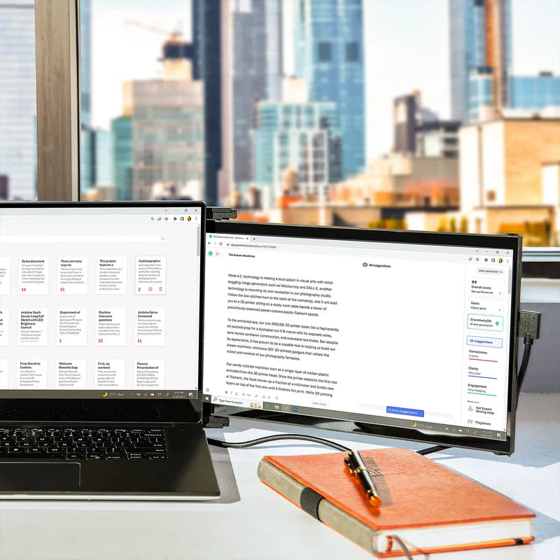 The Skilcraft Duex Max DS is a 14.1-inch portable dual-screen laptop monitor designed to boost productivity by giving users extra screen space wherever they go. This lightweight, plug-and-play display attaches directly to your laptop and is perfect for multitasking, presenting, and remote work.