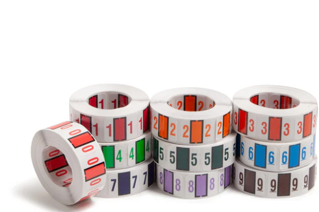 Smead Numerical End Tab File Folder Labels (0-9, 1 x 1.25", White) come in a roll of 500 labels, with 10 rolls per box. These pre-printed, color-coded labels are laminated for durability, preventing smudging and cracking. Designed for end tab filing systems, they feature a clear, easy-to-read format. The labels are self-adhesive and come in a convenient dispensing box.