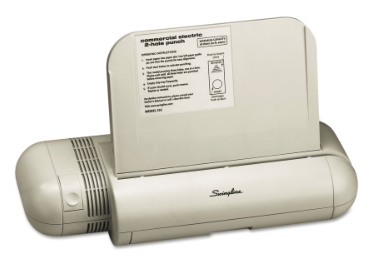 Swingline 28-sheet Commercial Electric Two-hole Punch, Fixed 9/32" Holes, Black/silver ( SWI74532 ) | Quiet, commercial-grade electric punch provides the speed and high-quality performance that you can count on. Punches its maximum sheet capacity at the touch of a button. Patented punch technology delivers clean and easy results. Paper guide included.