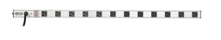 The Tripp Lite PS3612 12-Outlet Vertical Power Strip (120V, 15amp, Black) provides reliable power distribution for your devices. With 12 outlets in a compact, vertical design, it helps maximize space while keeping your workspace organized. This power strip features a 15-amp capacity and offers surge protection to safeguard your equipment from power surges and spikes. Ideal for use in offices, workstations, and server rooms, its durable black housing and sturdy construction ensure long-lasting performance. The 6-foot power cord provides flexibility in placement, making it a convenient and efficient solution for powering multiple devices.
