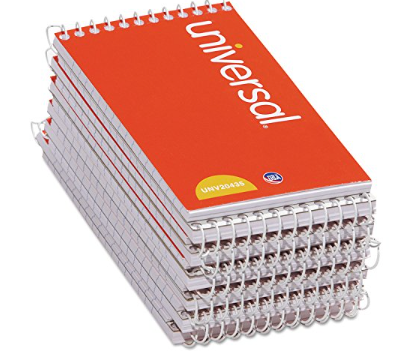 Universal Wirebound Memo Pad With Coil-lock Wire Binding, Narrow Rule, Orange Cover, 50 White 3 X 5 Sheets, 12/pack ( UNV20435 ) | Jot down ideas whenever they occur to you. Handy pad is the perfect size for pockets, bags and purses. Spiral-bound, with a flexible, durable cover, it's easy to fold open for quick one-handed notetaking.